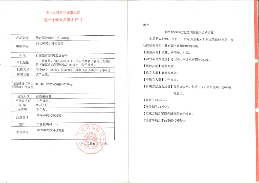 神兴牌沙棘欣之安口服液